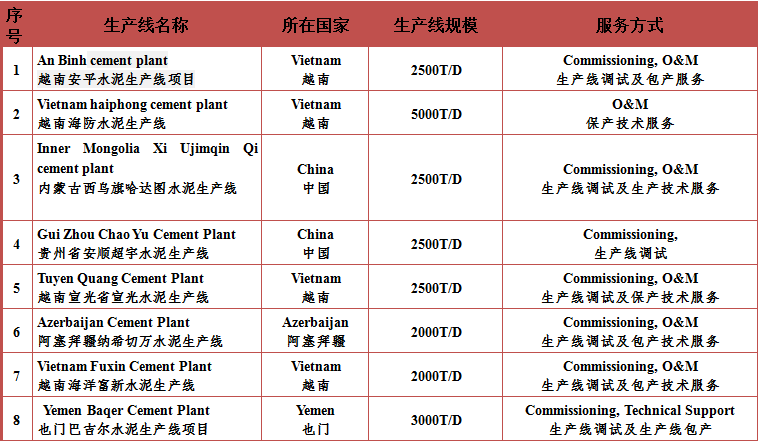 運(yùn)城市昌潤水泥工程技術(shù)有限公司主要業(yè)績表